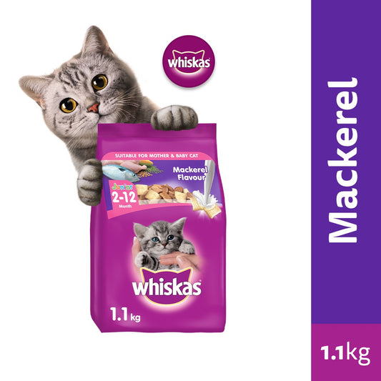 Whiskas Junior Ocean Fish/Mackerel Flavor with Milk Kitten Food Dry Cat Food for Kittens (1.1kg)